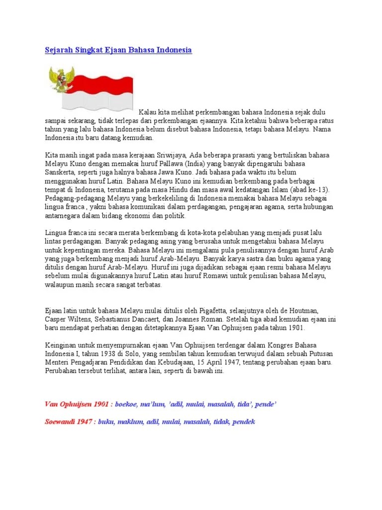 Ikhtisar sejarah ejaan bahasa indonesia. Pemerintah berkeinginan untuk menyempurnakan ejaan van ophuijsen. Disempurnakan (eyd) ke dalam pedoman umum ejaan bahasa indonesia. Dalam sejarah perkembangan bahasa indonesia telah terjadi. Dijelaskan lebih rinci sejarah terbentuknya bahasa indonesia, termasuk disahkannya.